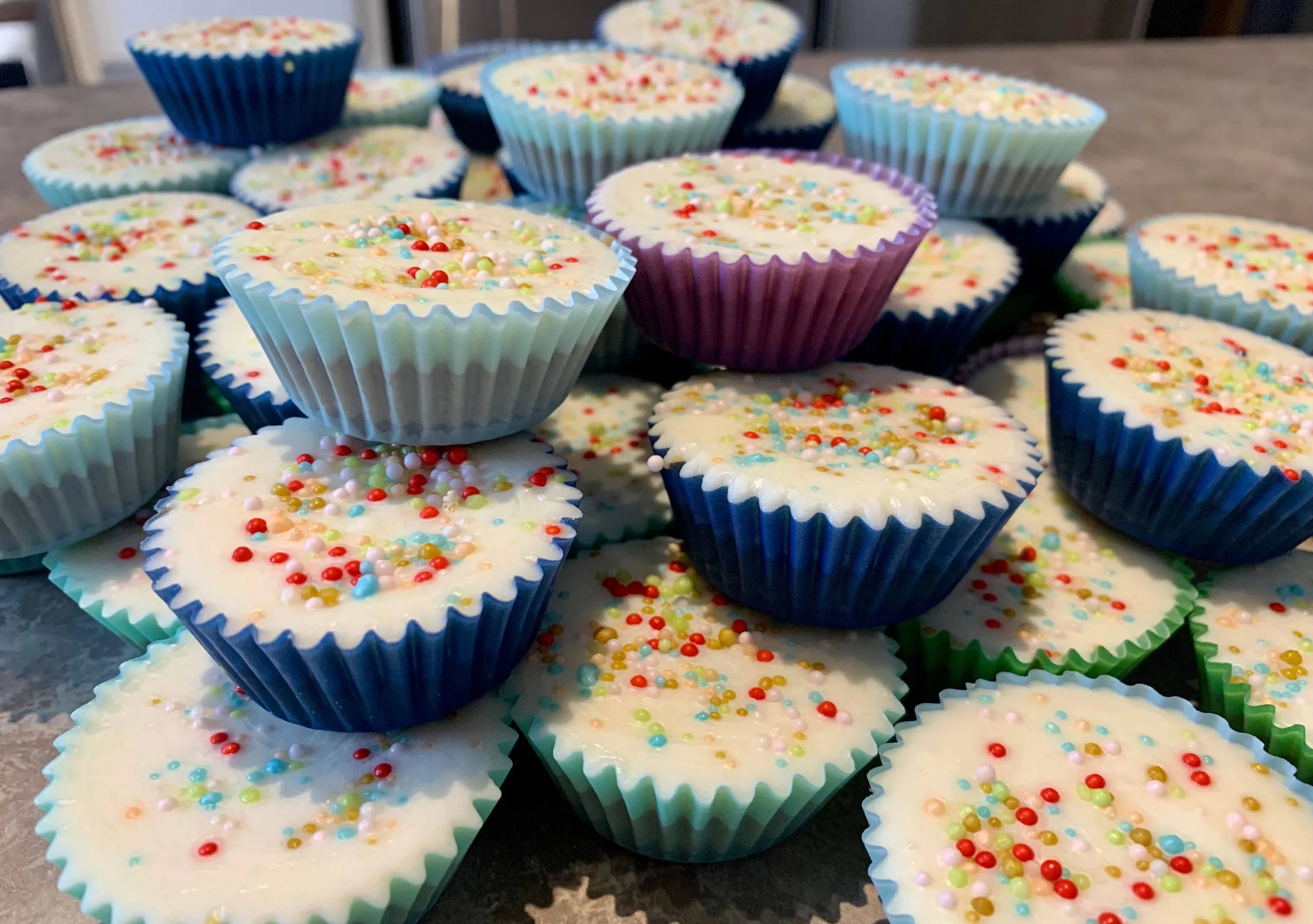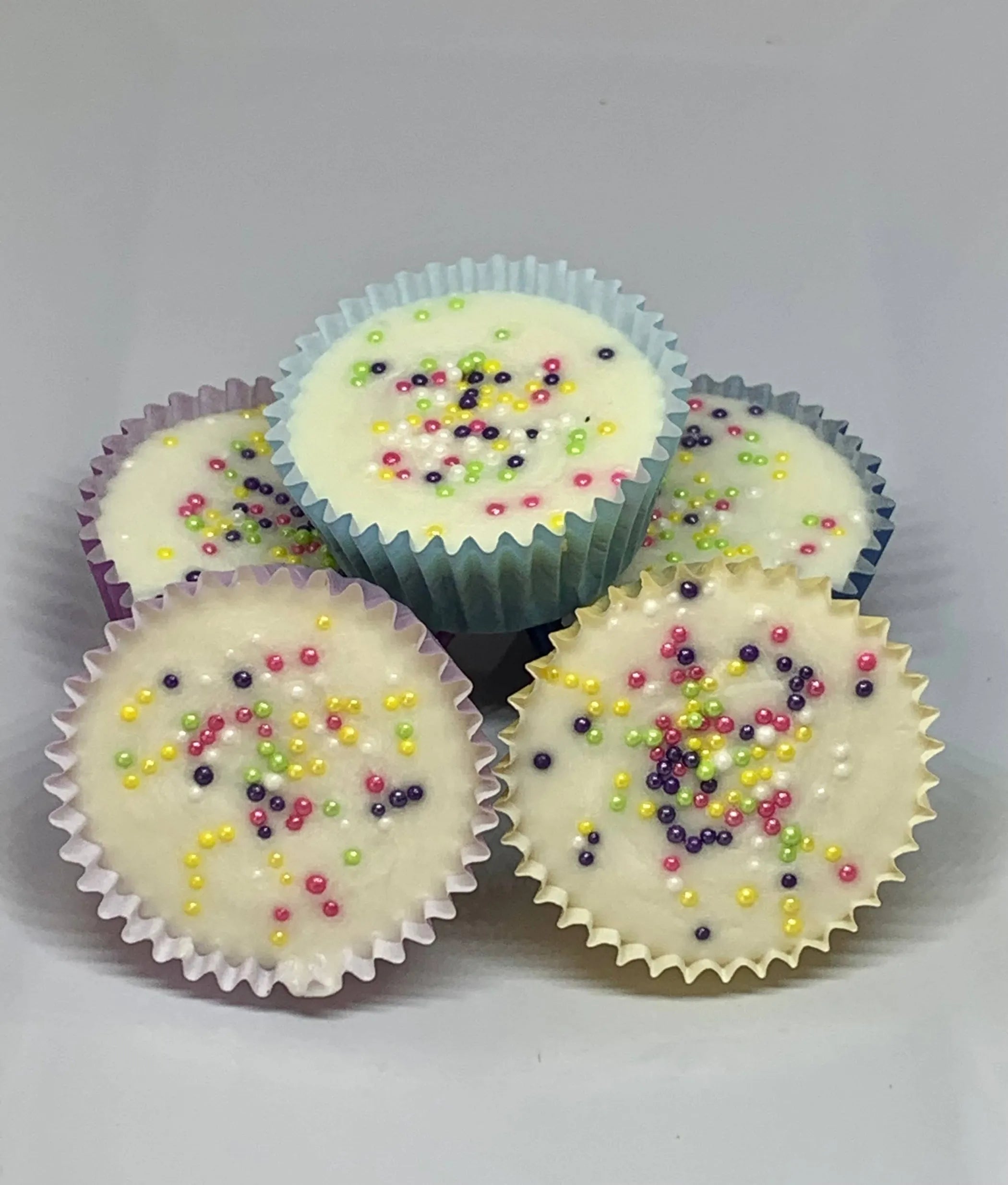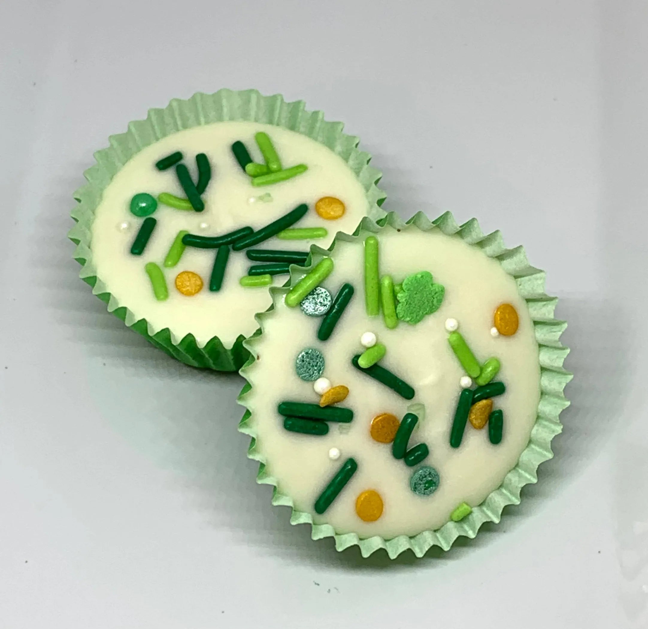Just like a reese cup is a favorite for us humans, but these are made for dogs! Layered with yummy carob, peanut butter and vanilla icing, then drizzled with festive colored sprinkles. Sprinkles color subject to change per season/holidays.
