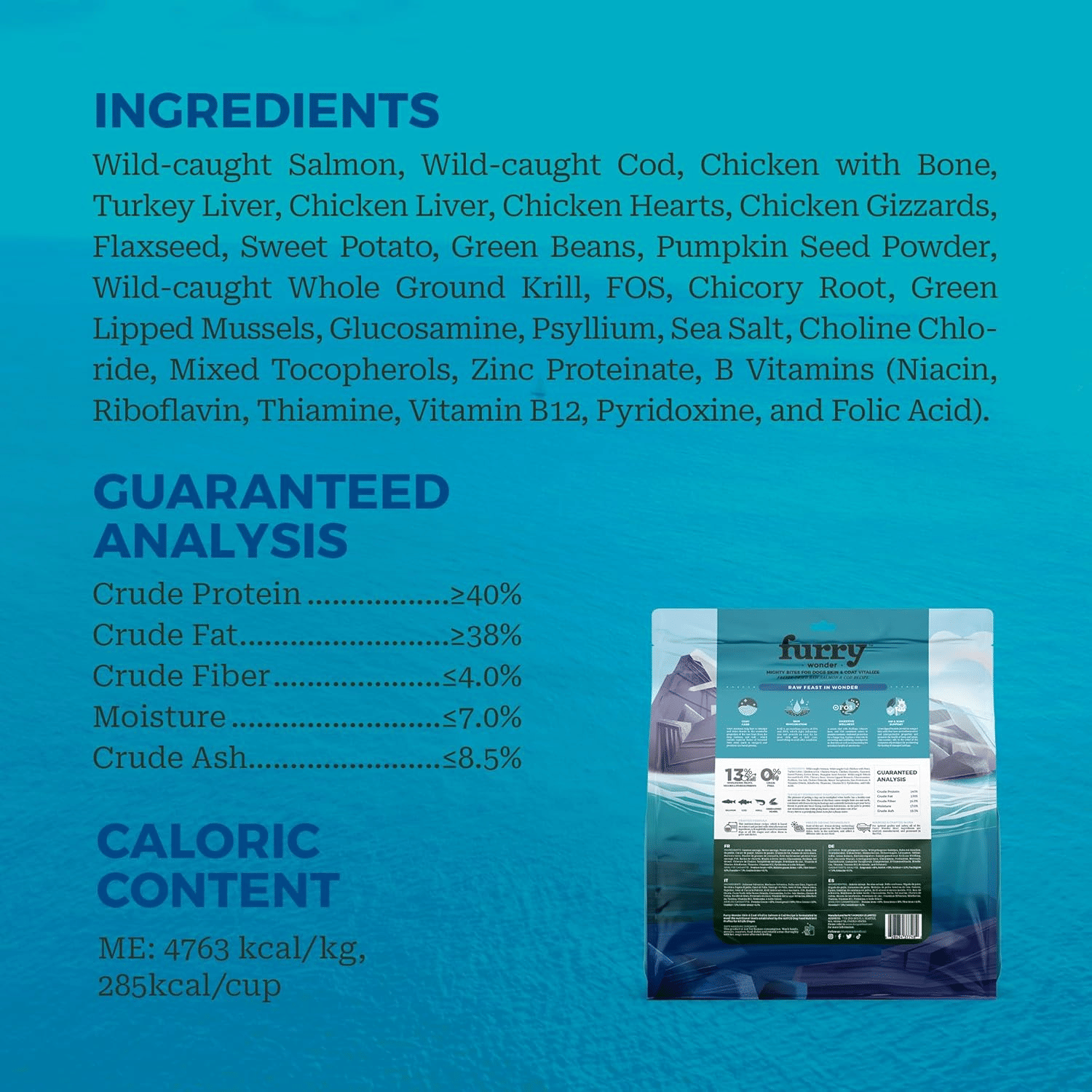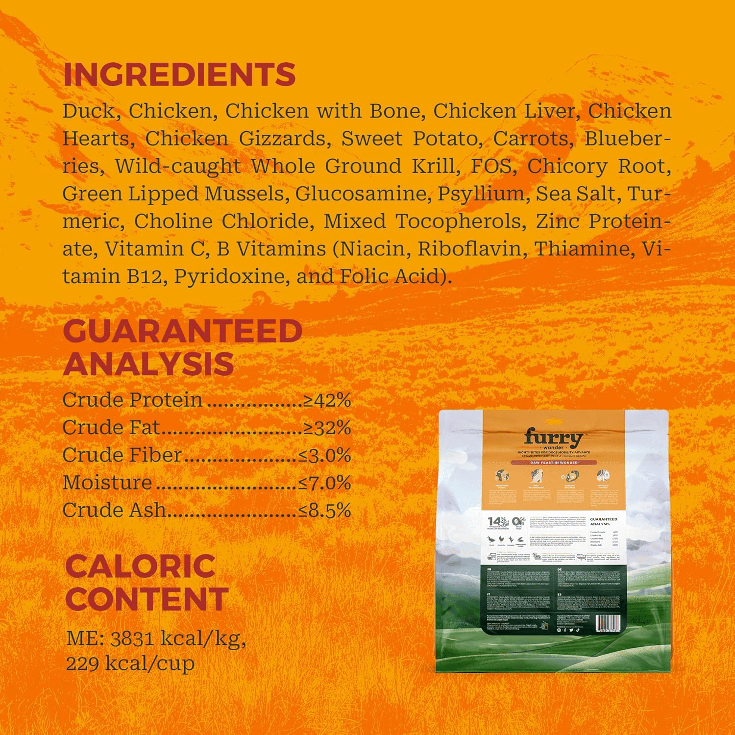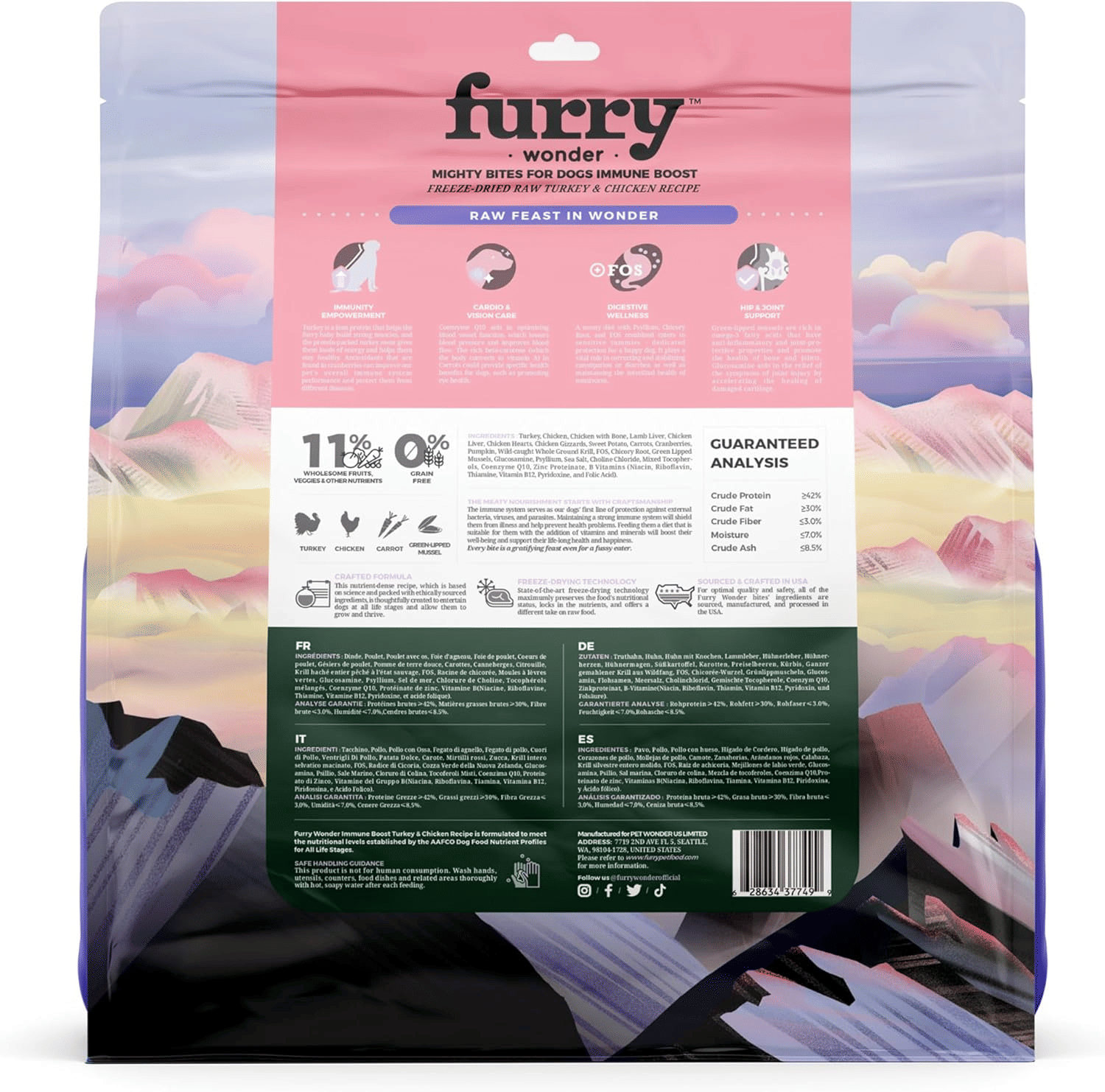FURRY WONDER Freeze Dried Dog Food, Turkey & Chicken, 16 oz, Grain-Free, High Protein, Complete Meal or Topper, Immune Boost, USA Made