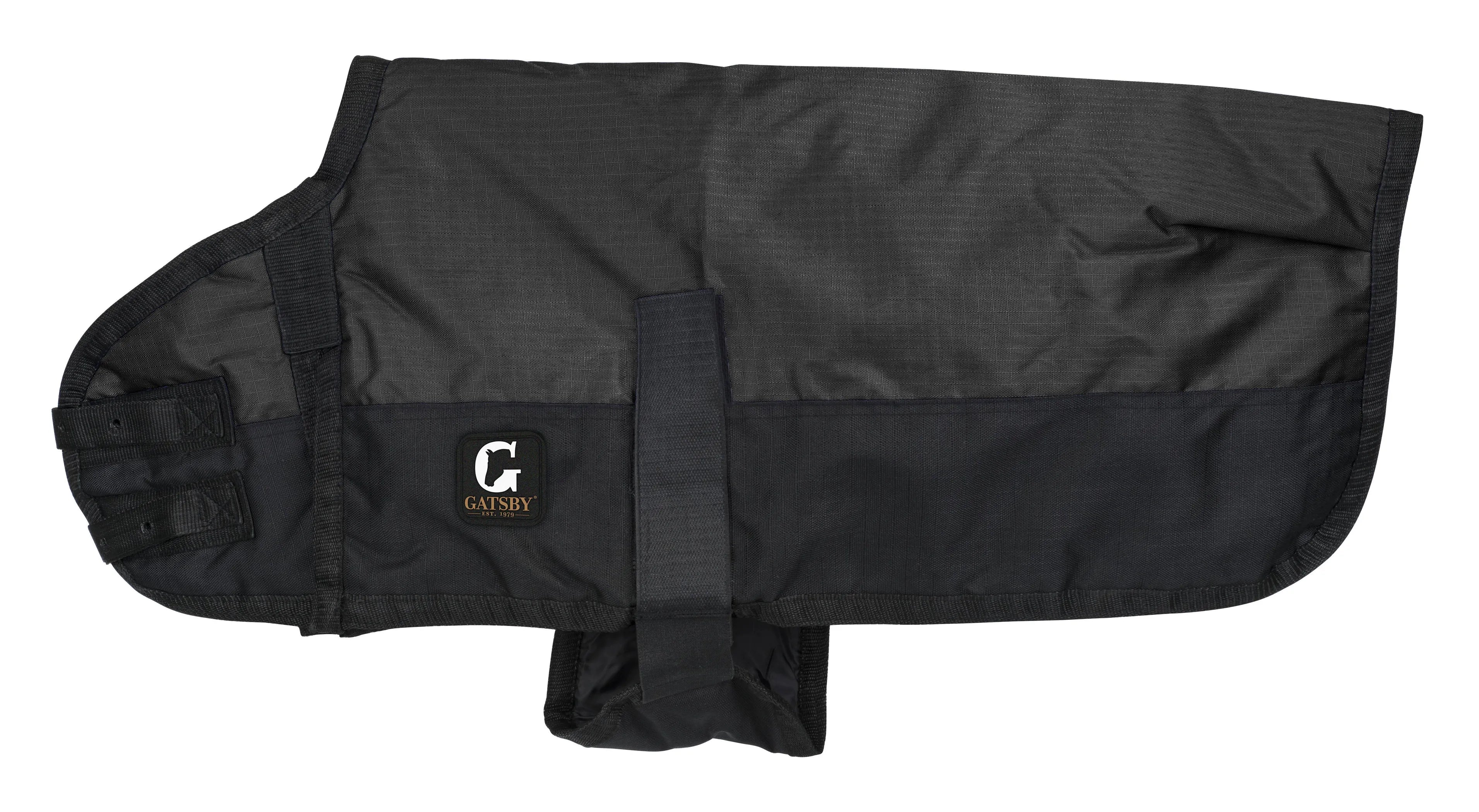 From the original Gatsby Quality Products. Introducing a new line of 600 denier ripstop waterproof poly outer shell with 200 gram poly fill. Breathable 210 lining. Double buckle front, adjustable belly-wrap with quick-grip closures, and cut out for tail. Shoulder gussets allow freedom of movement.