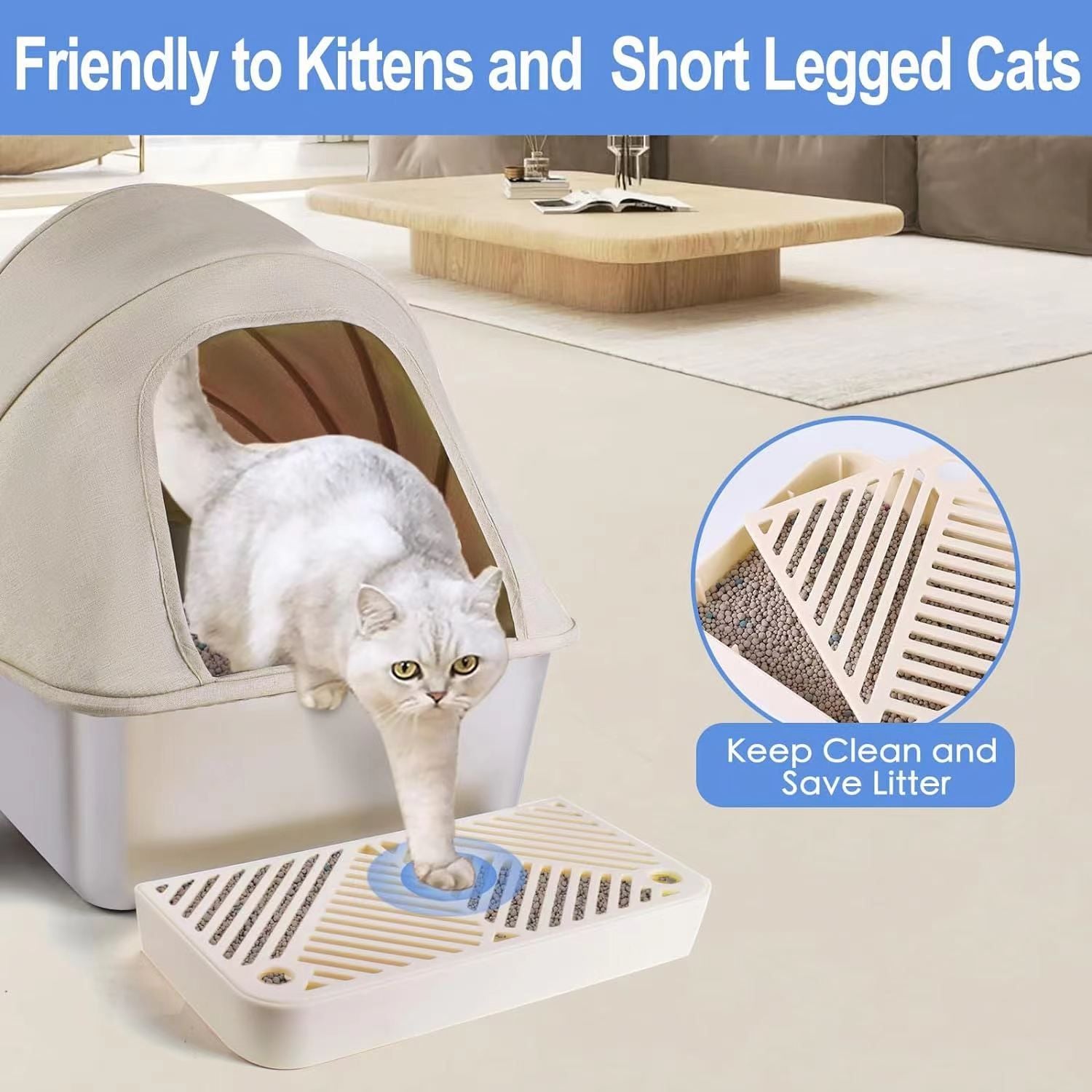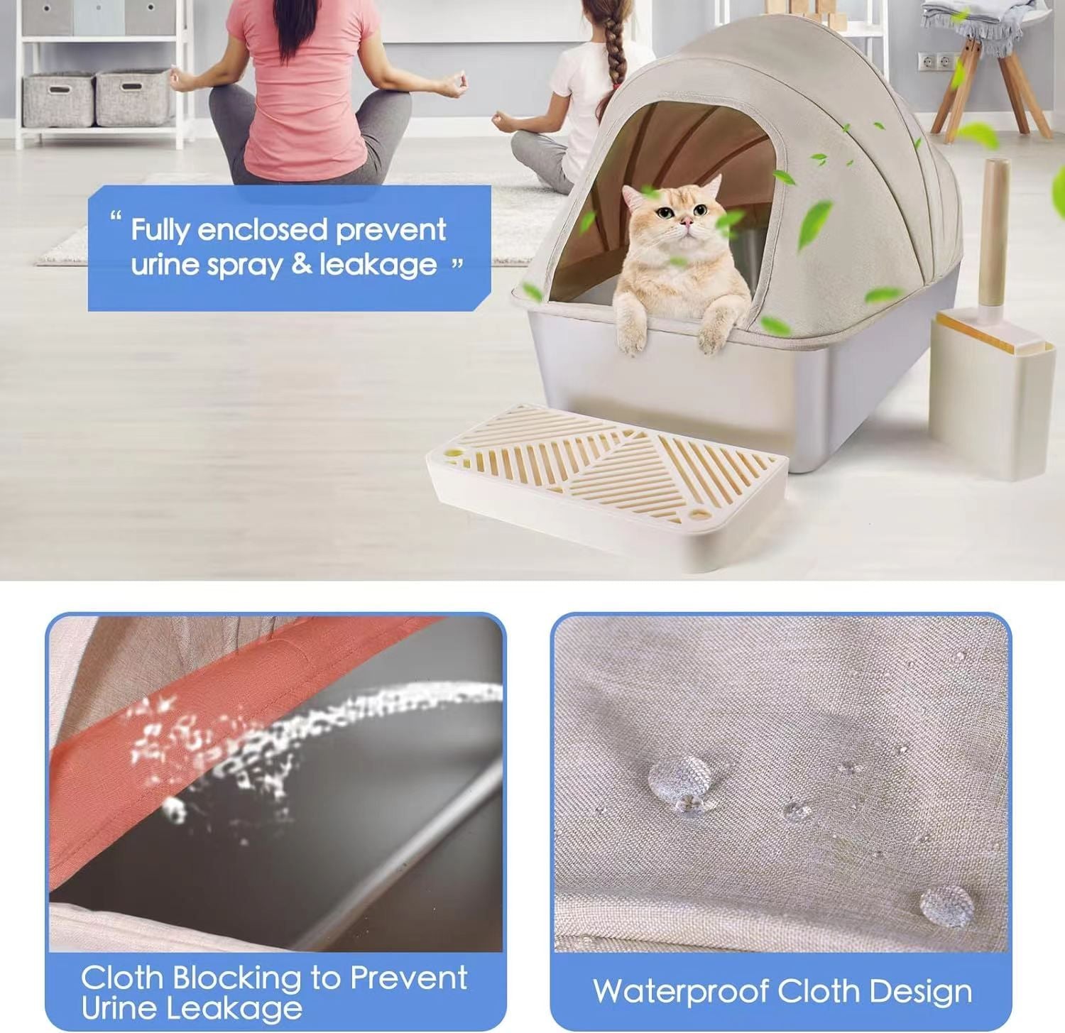 Upgrade Stainless Steel Cat Litter Box, XL Large Enclosed Cat Litter Boxes with Spacious for Big Cats, Premium Metal High Sided Litter Box Features Leak-Proof Design, Includes Scoop for Easy Cleaning.