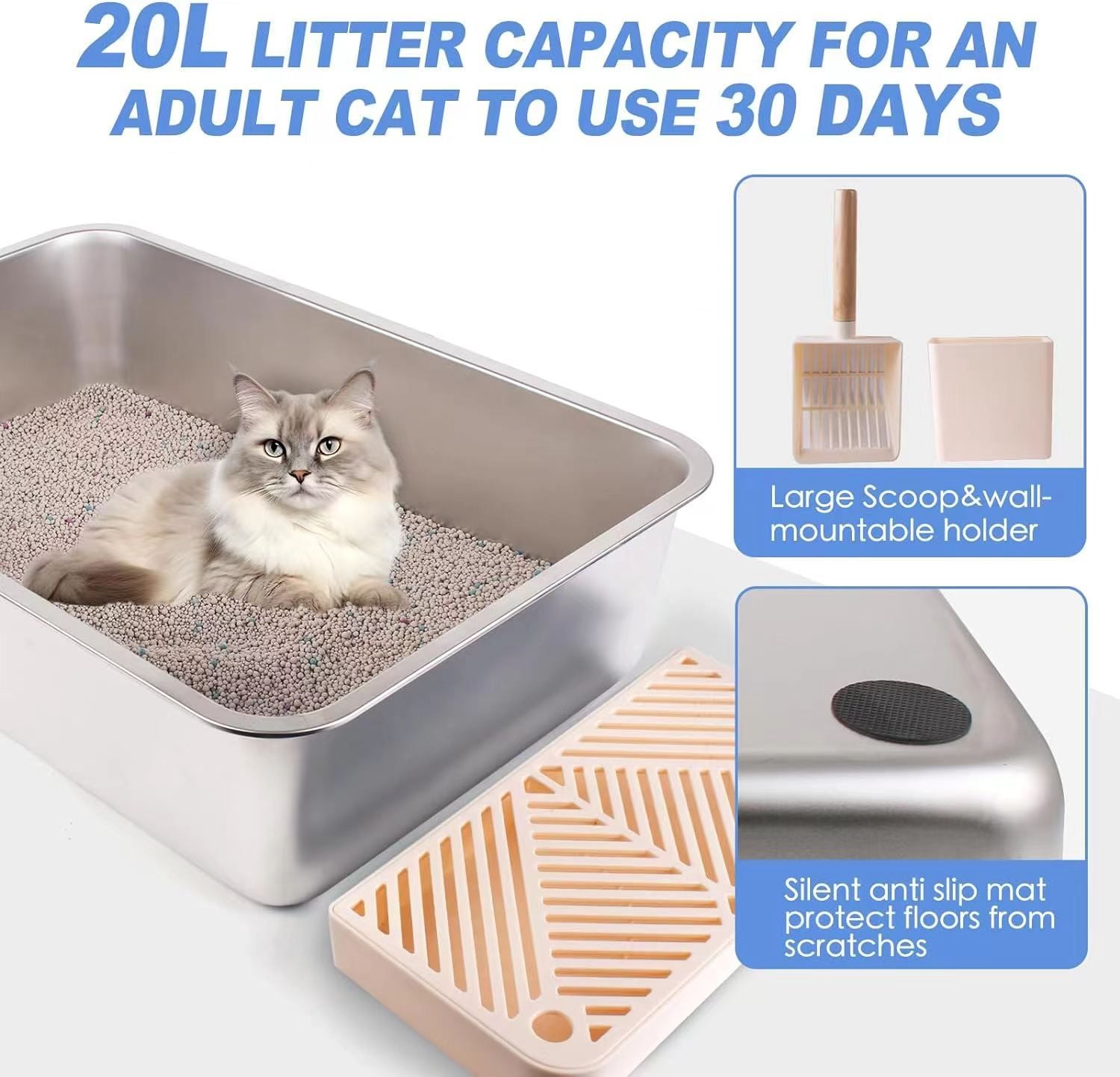 Upgrade Stainless Steel Cat Litter Box, XL Large Enclosed Cat Litter Boxes with Spacious for Big Cats, Premium Metal High Sided Litter Box Features Leak-Proof Design, Includes Scoop for Easy Cleaning