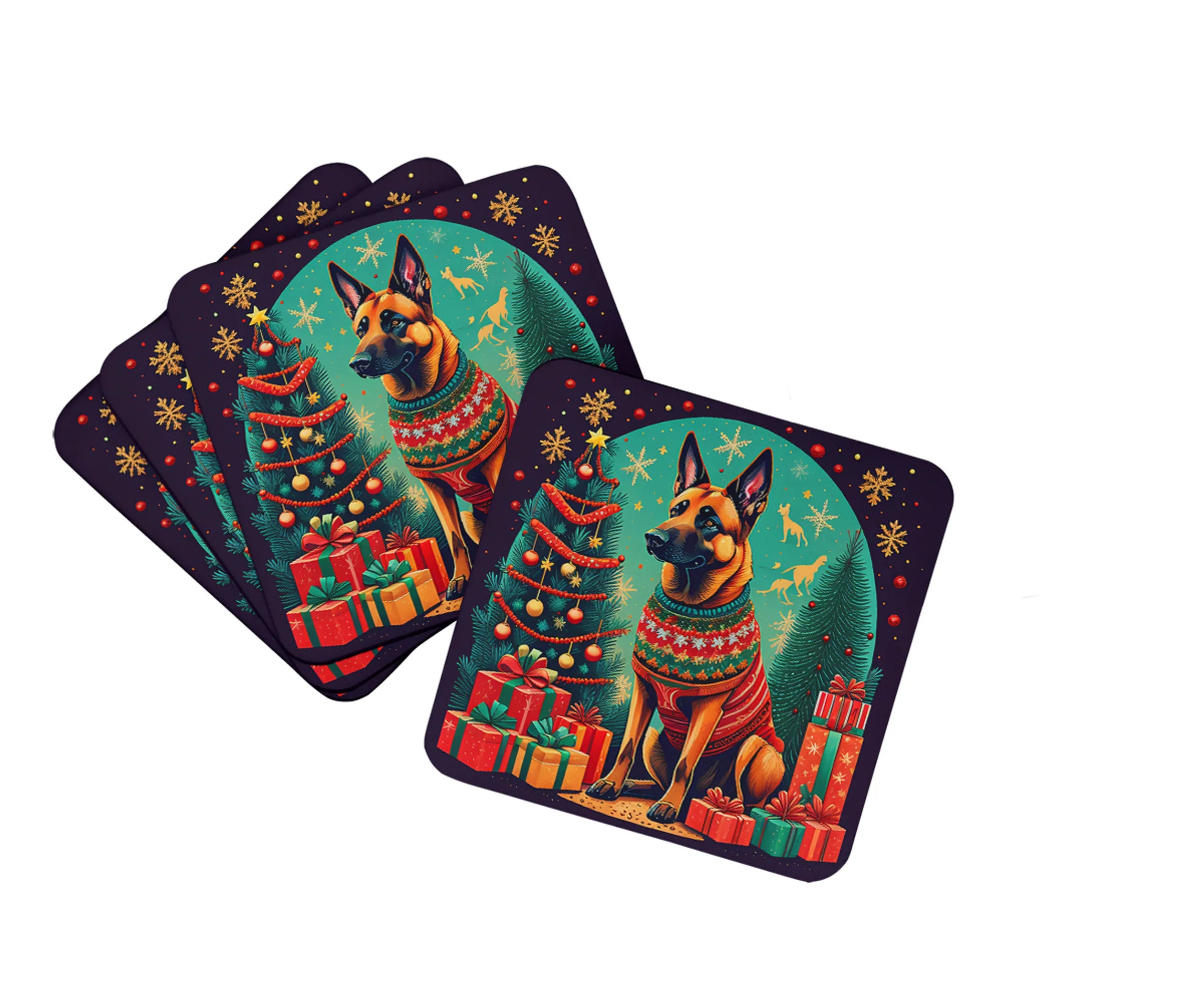 Foam Coasters featuring breed specific Australian Shepherd artwork. Celebrate Christmas with this Christmas Coaster set. Presenting our Set of 4 Foam Coasters, a stylish and practical addition to your table setting. Each square coaster, measuring 3 1/2 inches by 3 1/2 inches, is perfectly sized to accommodate various drinkware, from coffee mugs to tumblers. These coasters stand out with their full-color artwork, permanently dyed onto the material for a vibrant and fade-resistant finish. They're not just functional, they're a fashionable statement, adding a touch of flair to any gathering or event. Our foam coasters serve a dual purpose - they protect your table from water stains and are perfect for both hot and cold drinks. The material used is similar to that of our high-quality mouse pads, ensuring durability and heat resistance. These coasters are easy to maintain - simply wash them in the top of your dishwasher and lay flat to dry. The design won't come off, ensuring they retain their vivid colors for years. Pair them with one of our insulated coolers or huggers for a cohesive, thoughtful gift set. Enhance your beverage experience with our Set of 4 Foam Coasters.