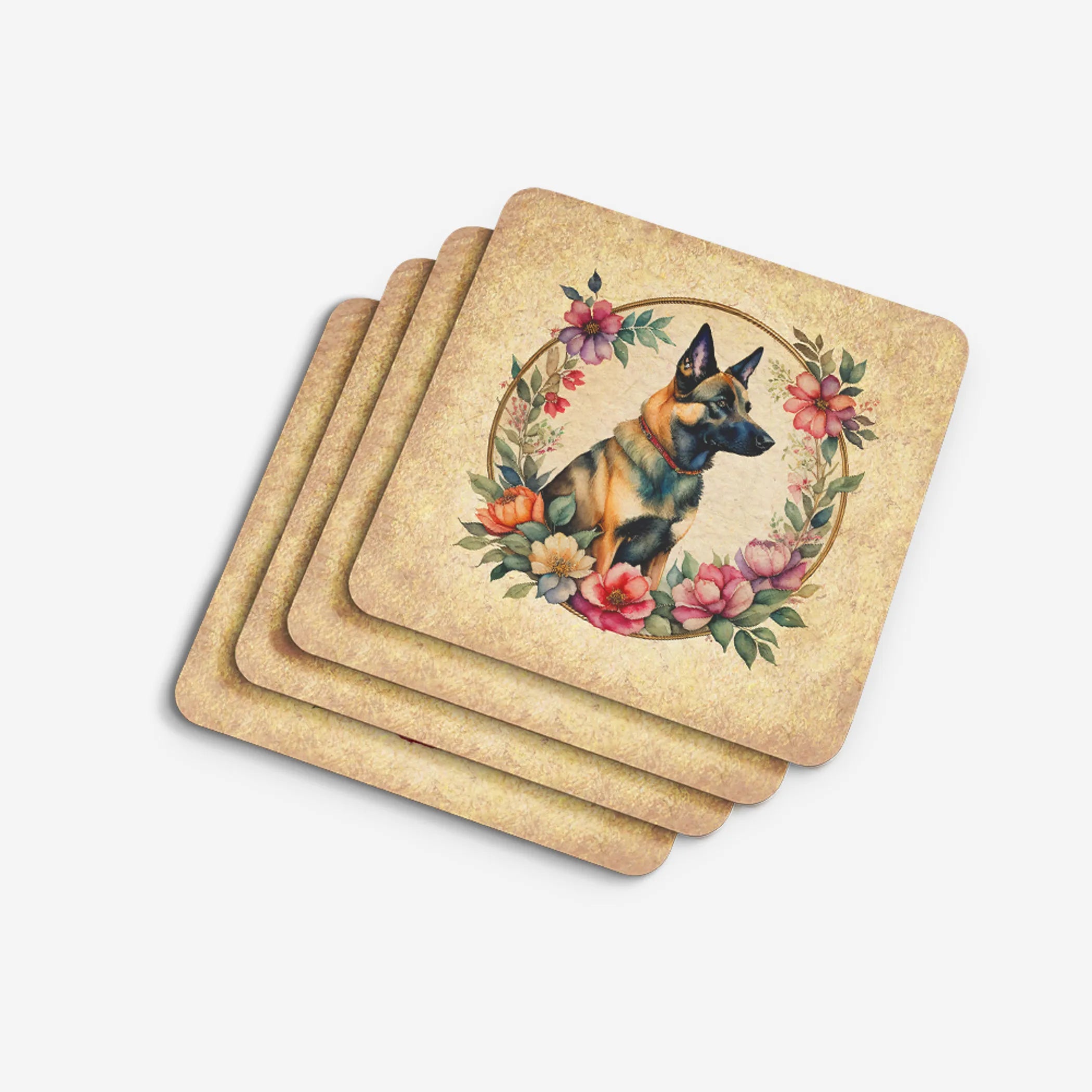 Foam Coasters featuring breed specific Belgian Malinois artwork. Presenting our Set of 4 Foam Coasters, a stylish and practical addition to your table setting. Each square coaster, measuring 3 1/2 inches by 3 1/2 inches, is perfectly sized to accommodate various drinkware, from coffee mugs to tumblers. These coasters stand out with their full-color artwork, permanently dyed onto the material for a vibrant and fade-resistant finish. They're not just functional, they're a fashionable statement, adding a touch of flair to any gathering or event. Our foam coasters serve a dual purpose - they protect your table from water stains and are perfect for both hot and cold drinks. The material used is similar to that of our high-quality mouse pads, ensuring durability and heat resistance. These coasters are easy to maintain - simply wash them in the top of your dishwasher and lay flat to dry. The design won't come off, ensuring they retain their vivid colors for years. Pair them with one of our insulated coolers or huggers for a cohesive, thoughtful gift set. Enhance your beverage experience with our Set of 4 Foam Coasters.