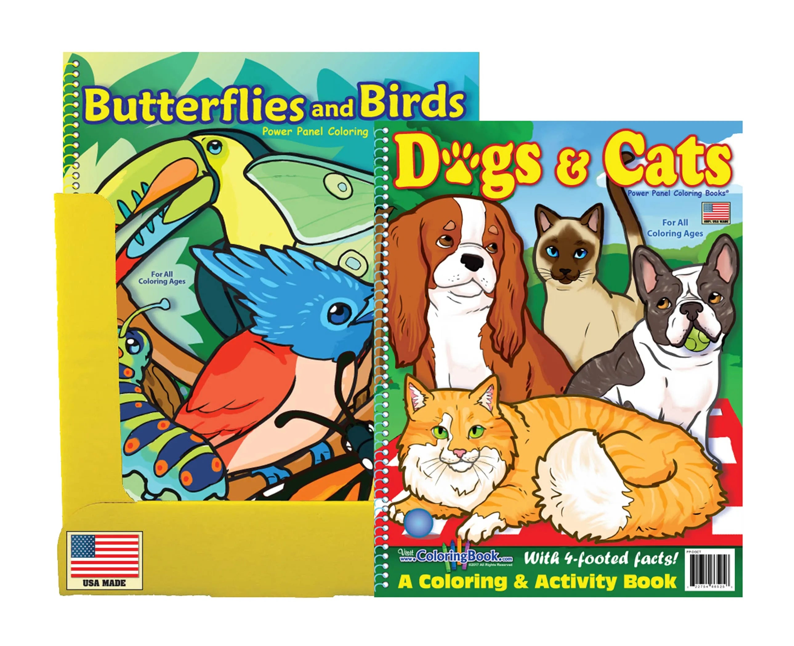This countertop display contains 24 Coloring and Activity Books; 12 Butterfly and Birds and 12 Dogs and Cats. 40 Pages of Fun Coloring with Square Back Binding. Manufactured in St. Louis Missouri, USA.
