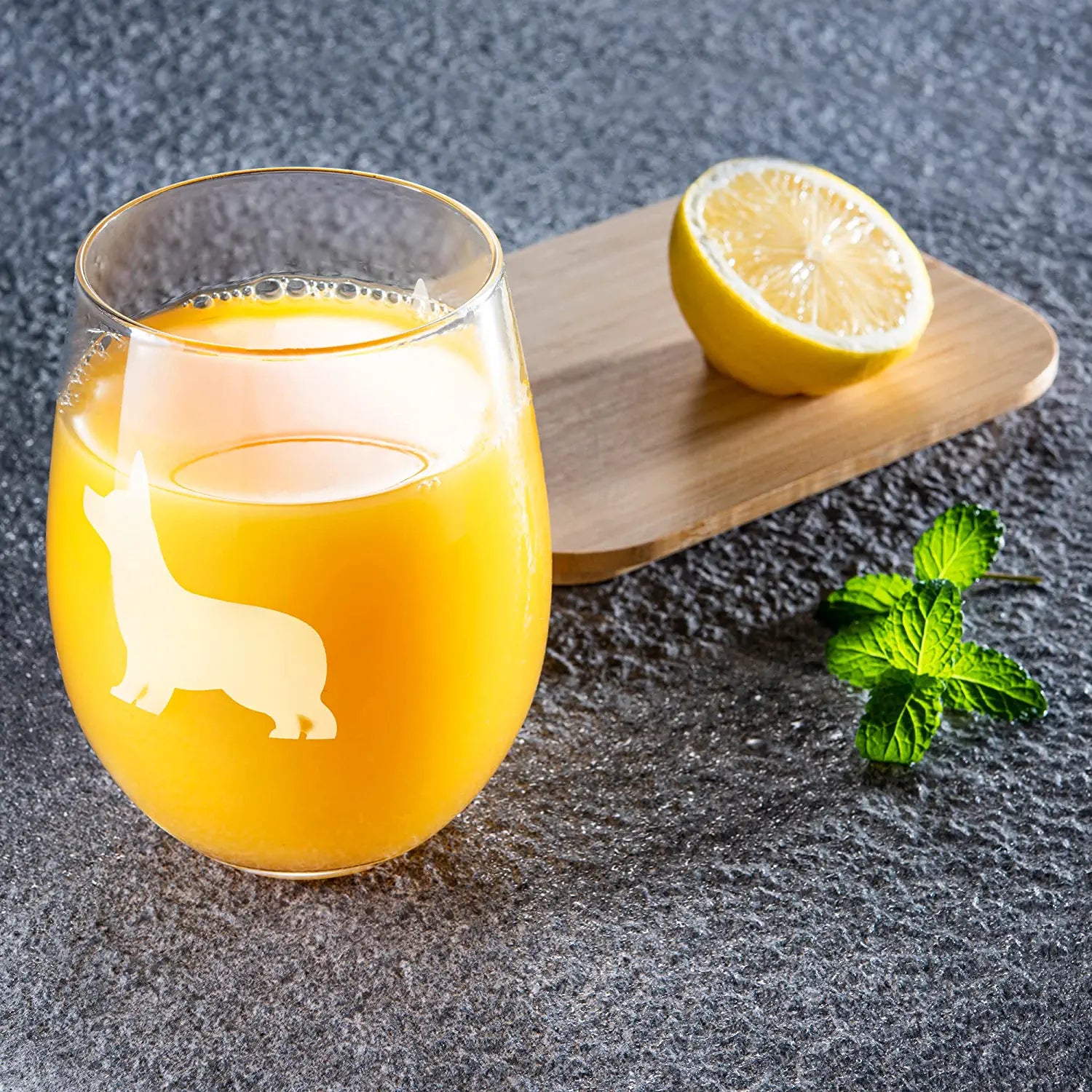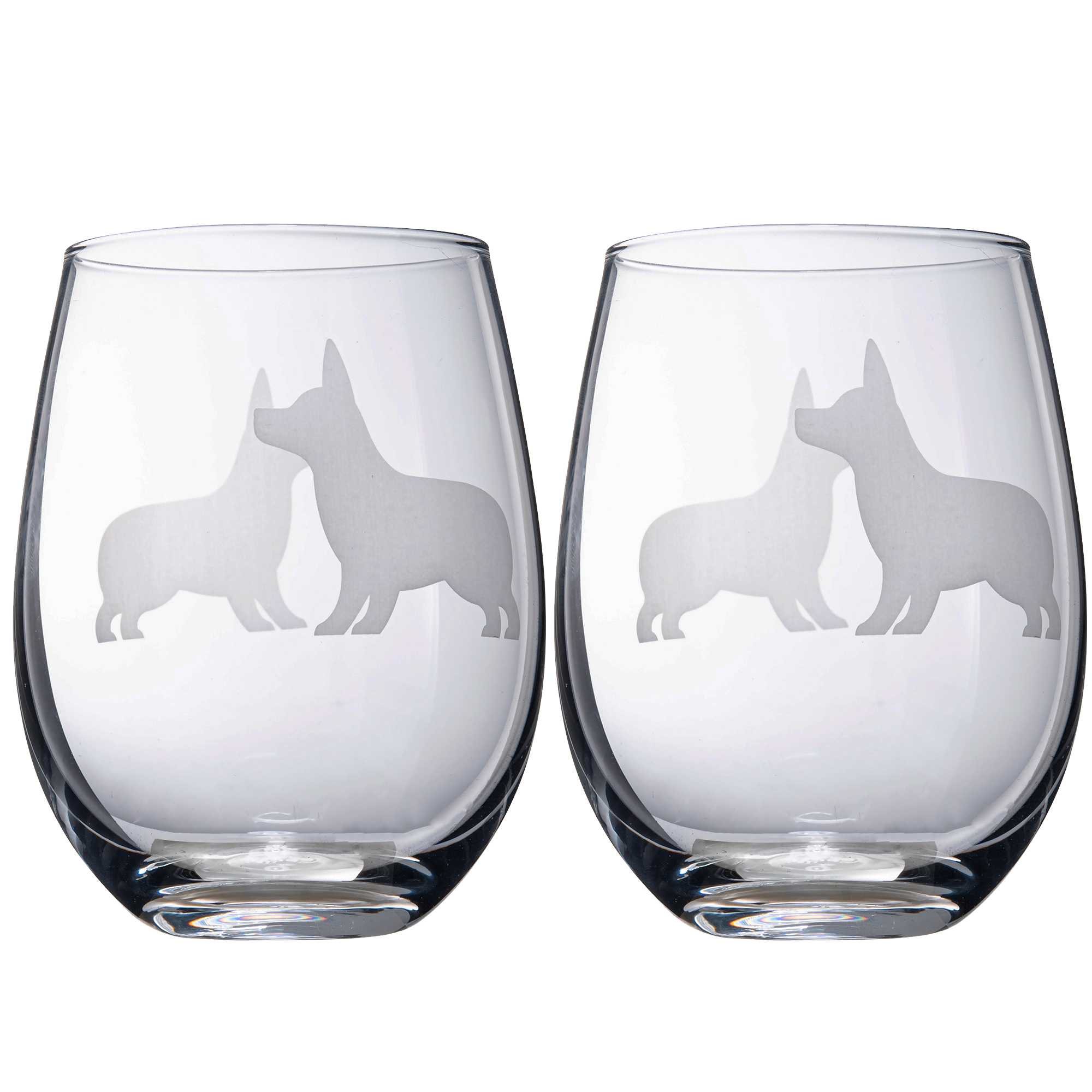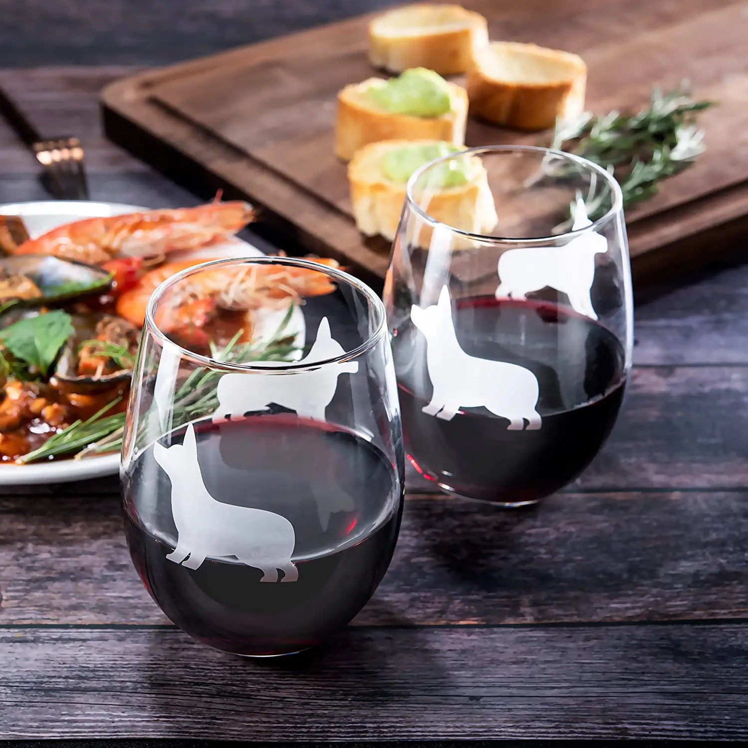 Stemless Wine Glasses Set of 2 by The Wine Savant - Puppy & Dog Lover Glass Gifts Etched Tumblers for Anniversary, Wedding, Home Bar Gifts (Corgi)
