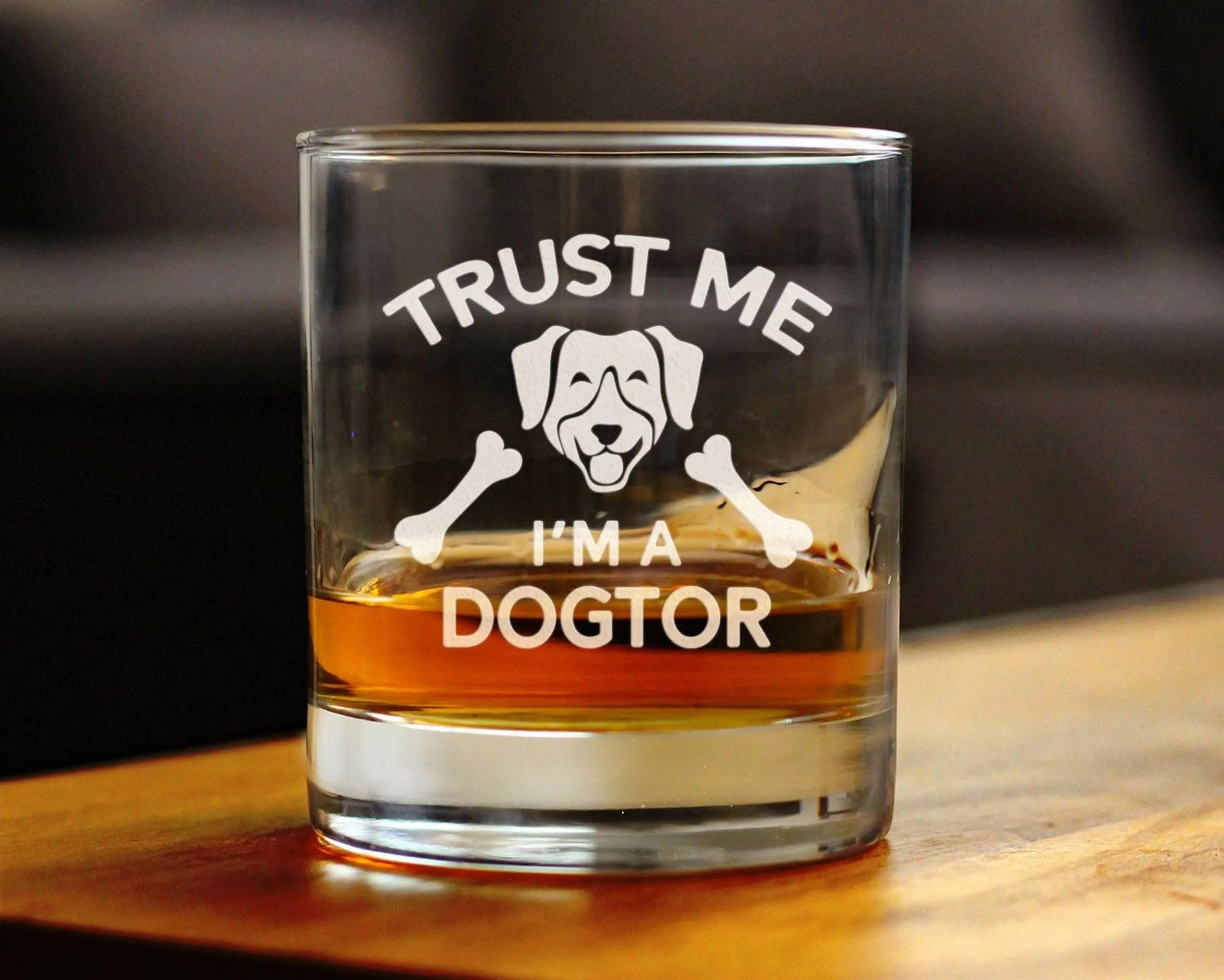 Dogtor - 10 oz Rocks Glass or Old Fashioned Glass, Etched Glassware - Funny Dog Themed Decor and Gifts for Veterinarians
