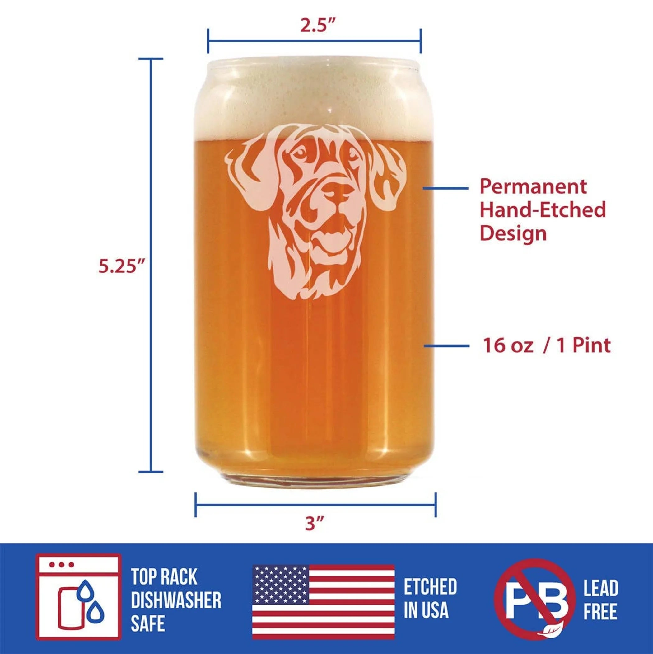 Great Dane Face Beer Can Pint Glass - Great Dane Gifts