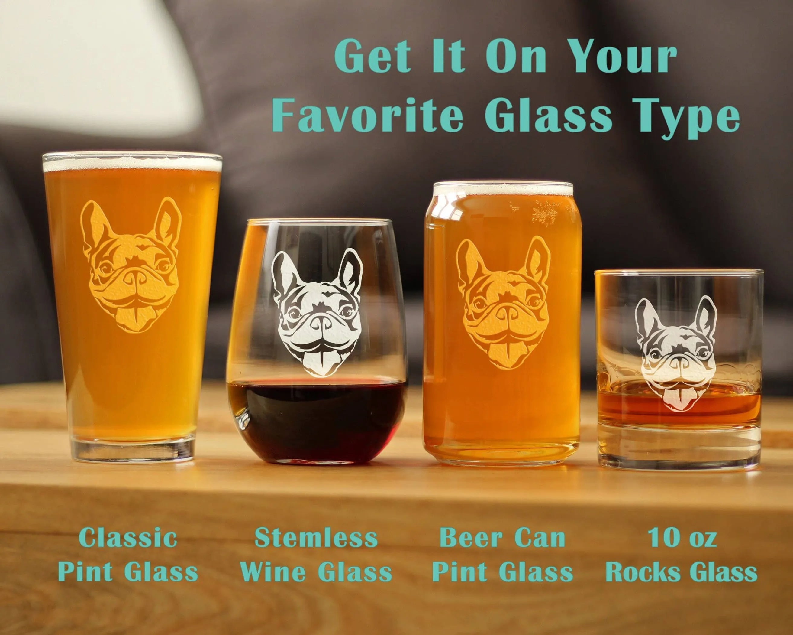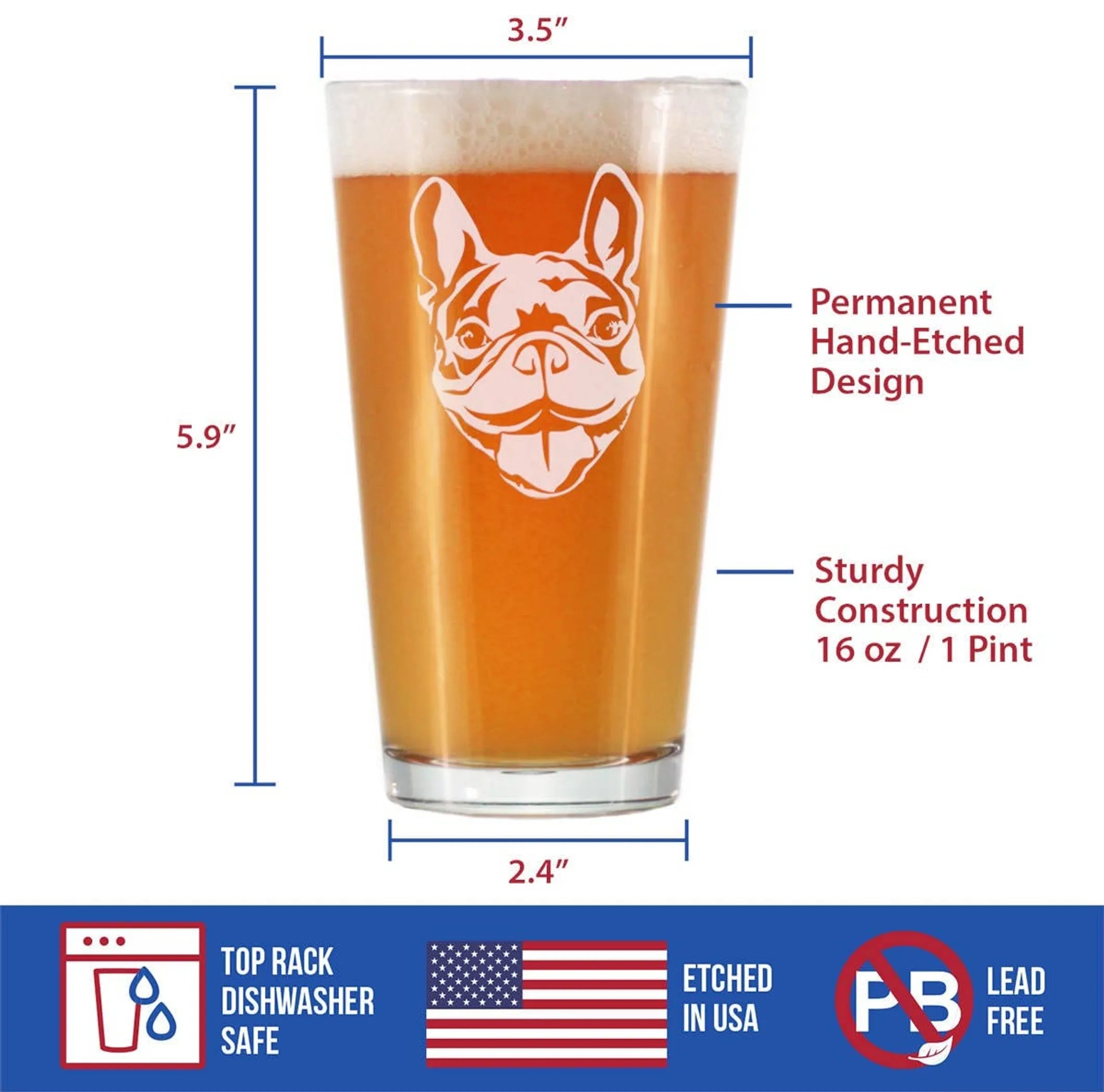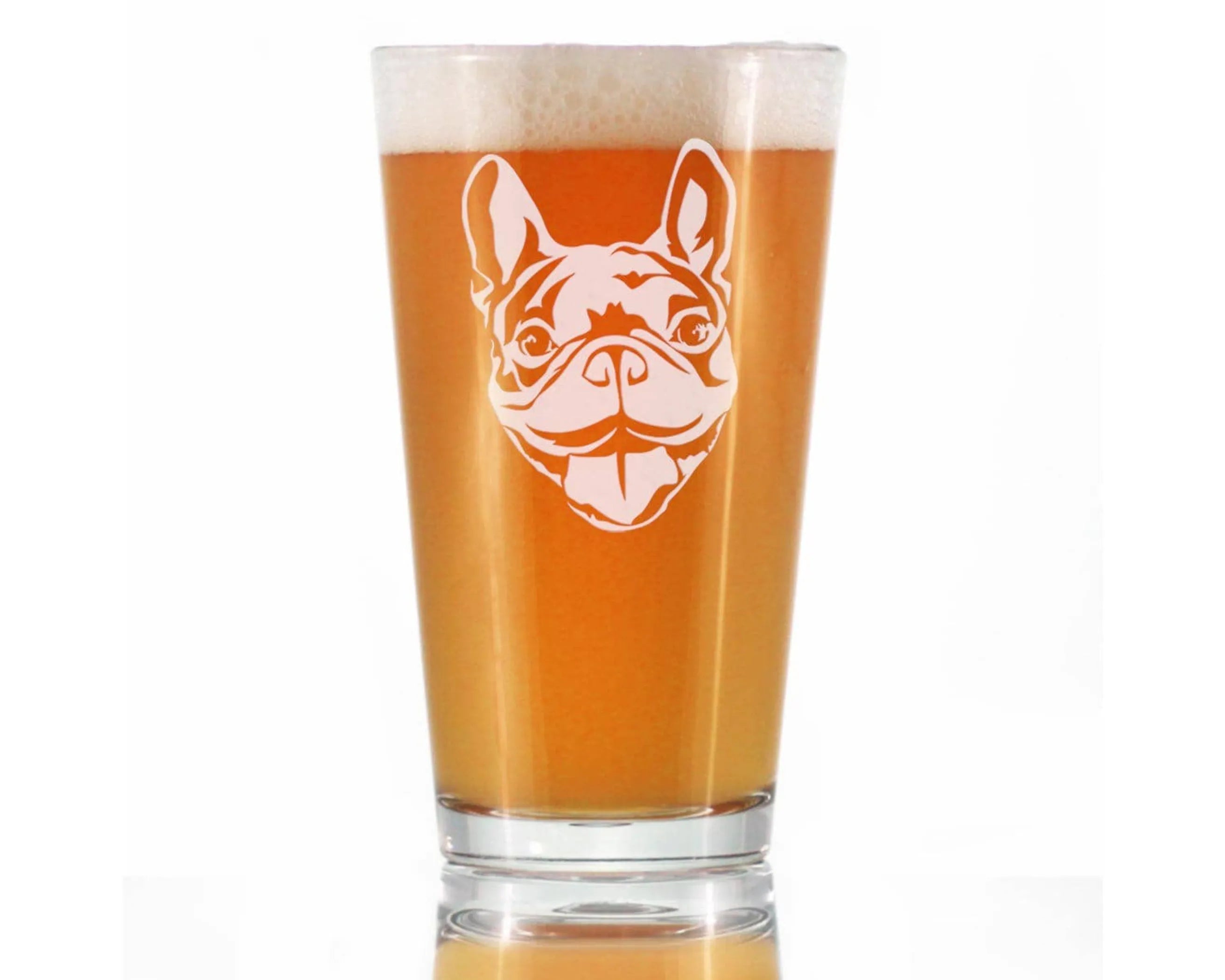 Happy French Bulldog Face - Funny Pint Glass, 16 Oz, Etched Sayings - Cute Gifts for Dog Lovers with Frenchies