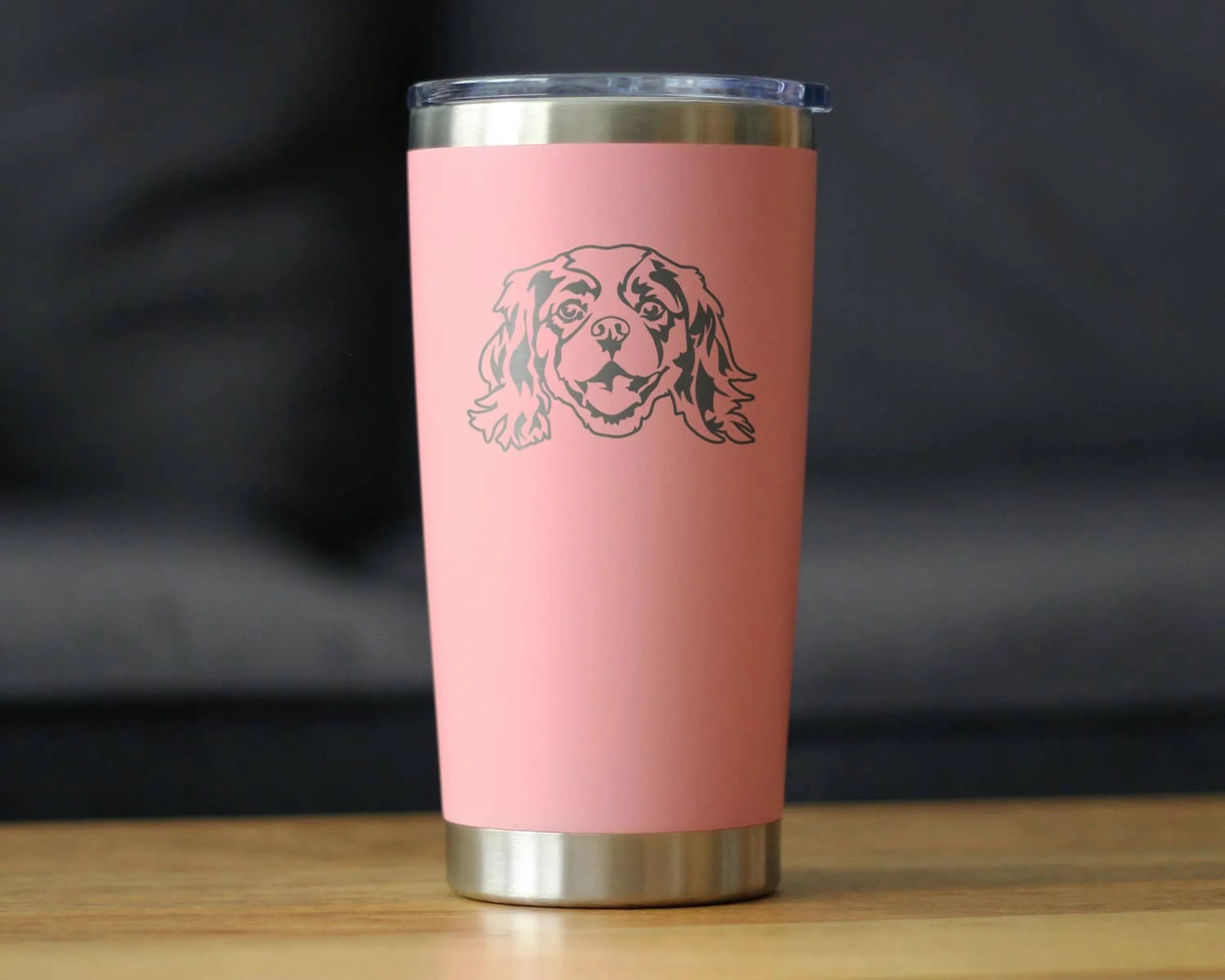 Insulated Coffee Tumbler Cup with Sliding Lid - Cavalier King Charles Spaniel Face - 20 oz - Cute Gifts for Dog Lovers with Spaniels