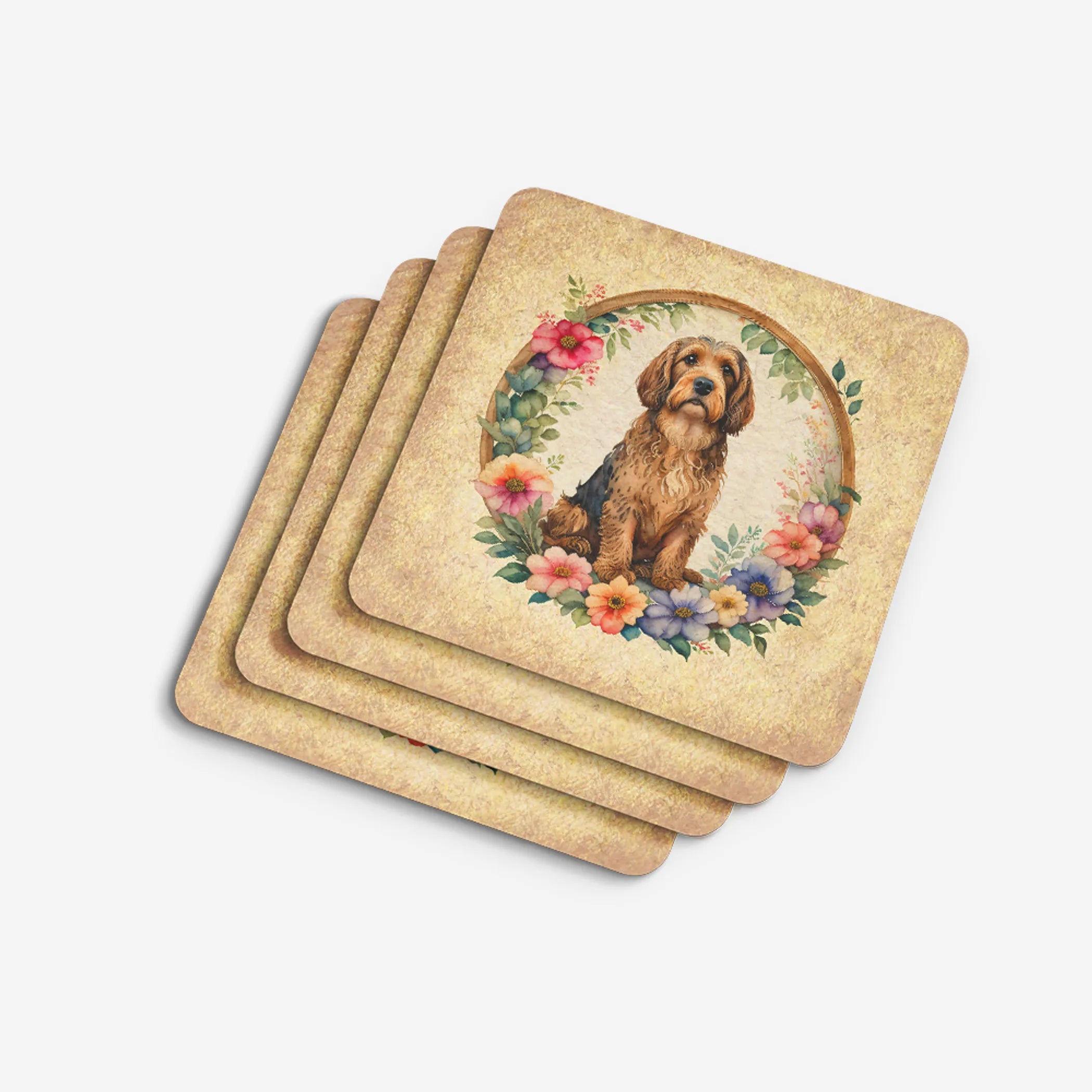 Otterhound and Flowers Foam Coasters
