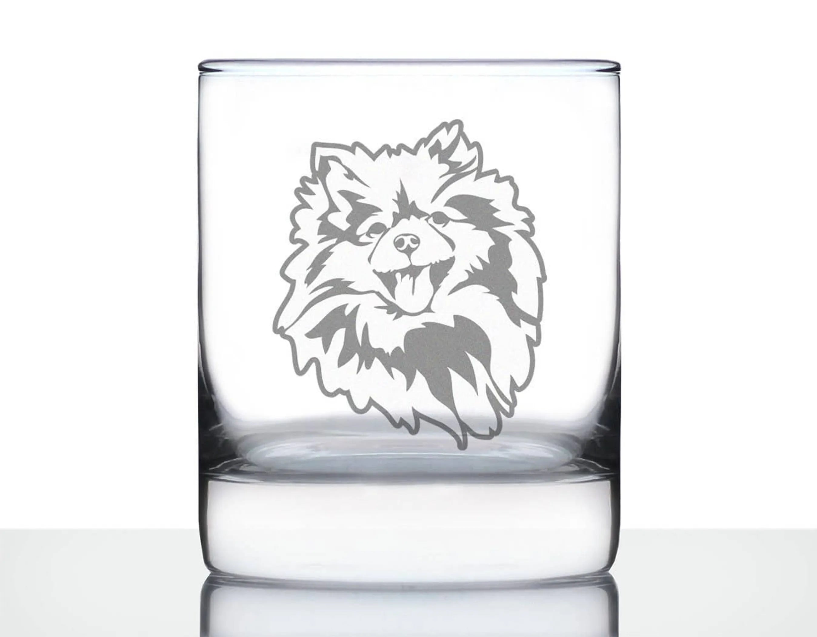 Pomeranian Face - 10 oz Rocks Glass or Old Fashioned Glass, Etched Glassware - Cute Gifts for Dog Lovers with Pomeranians