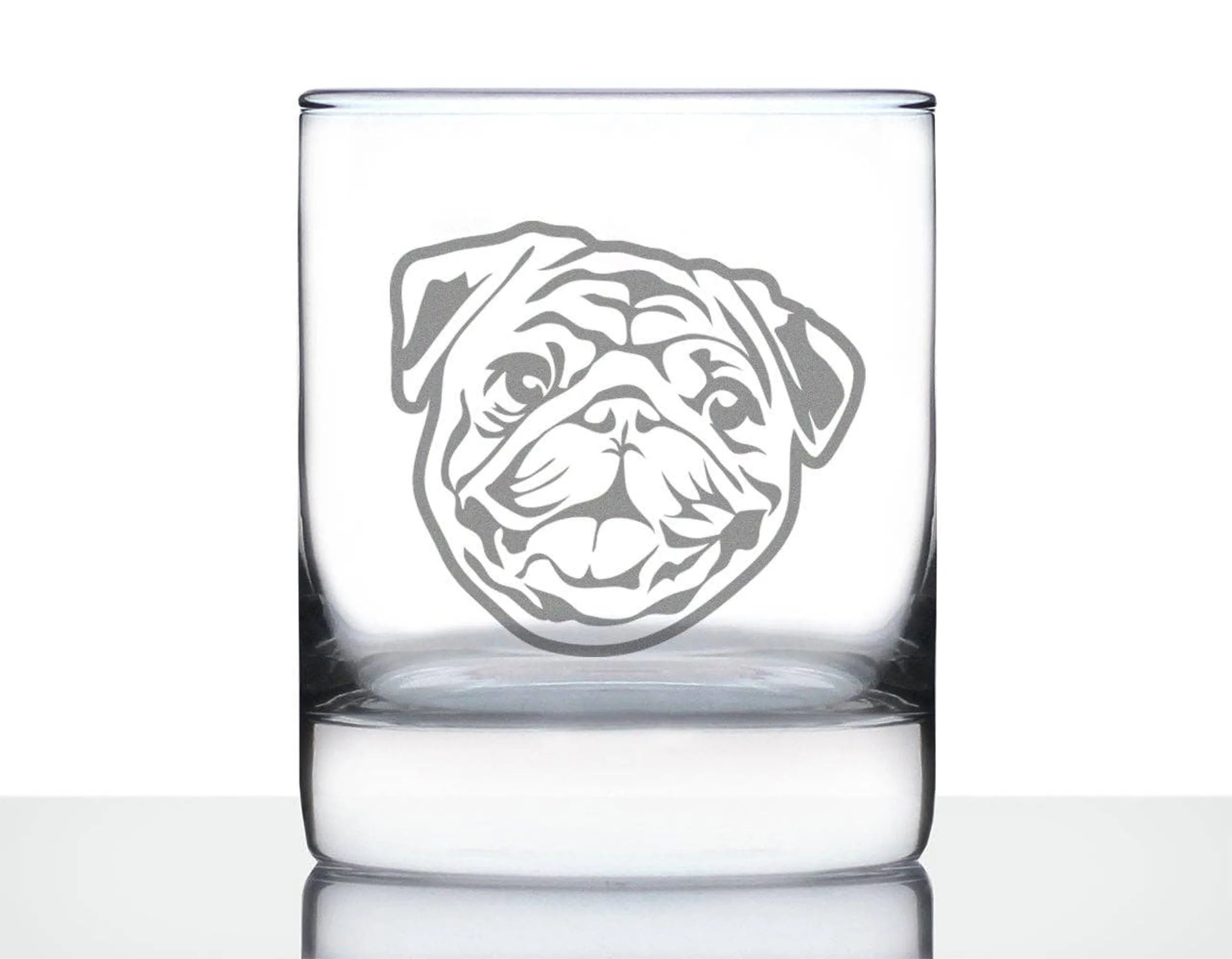 Pug Whiskey Rocks Glass - Pug Dog Gifts and Decor