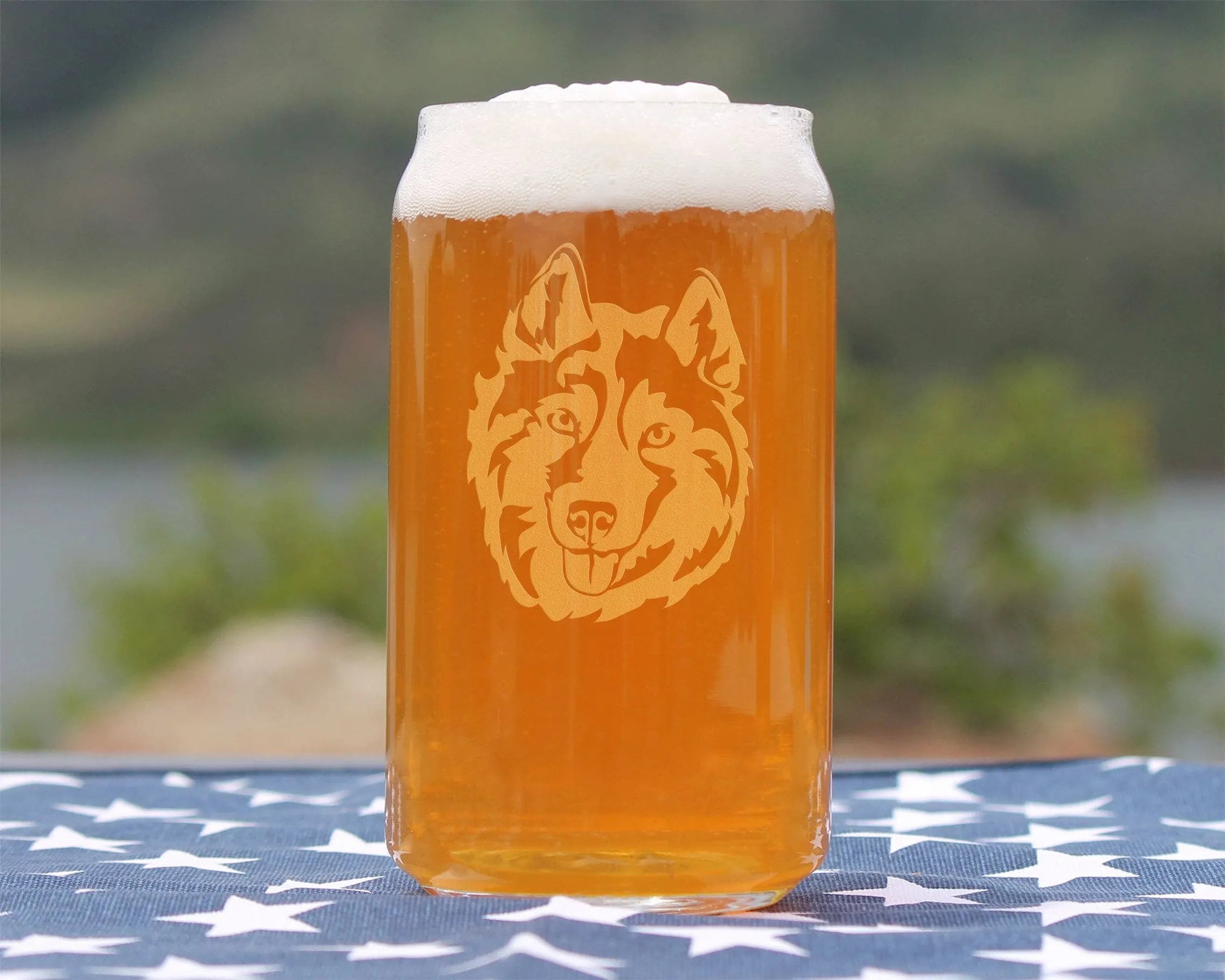 Siberian Husky Face Beer Can Pint Glass - Dog Gifts