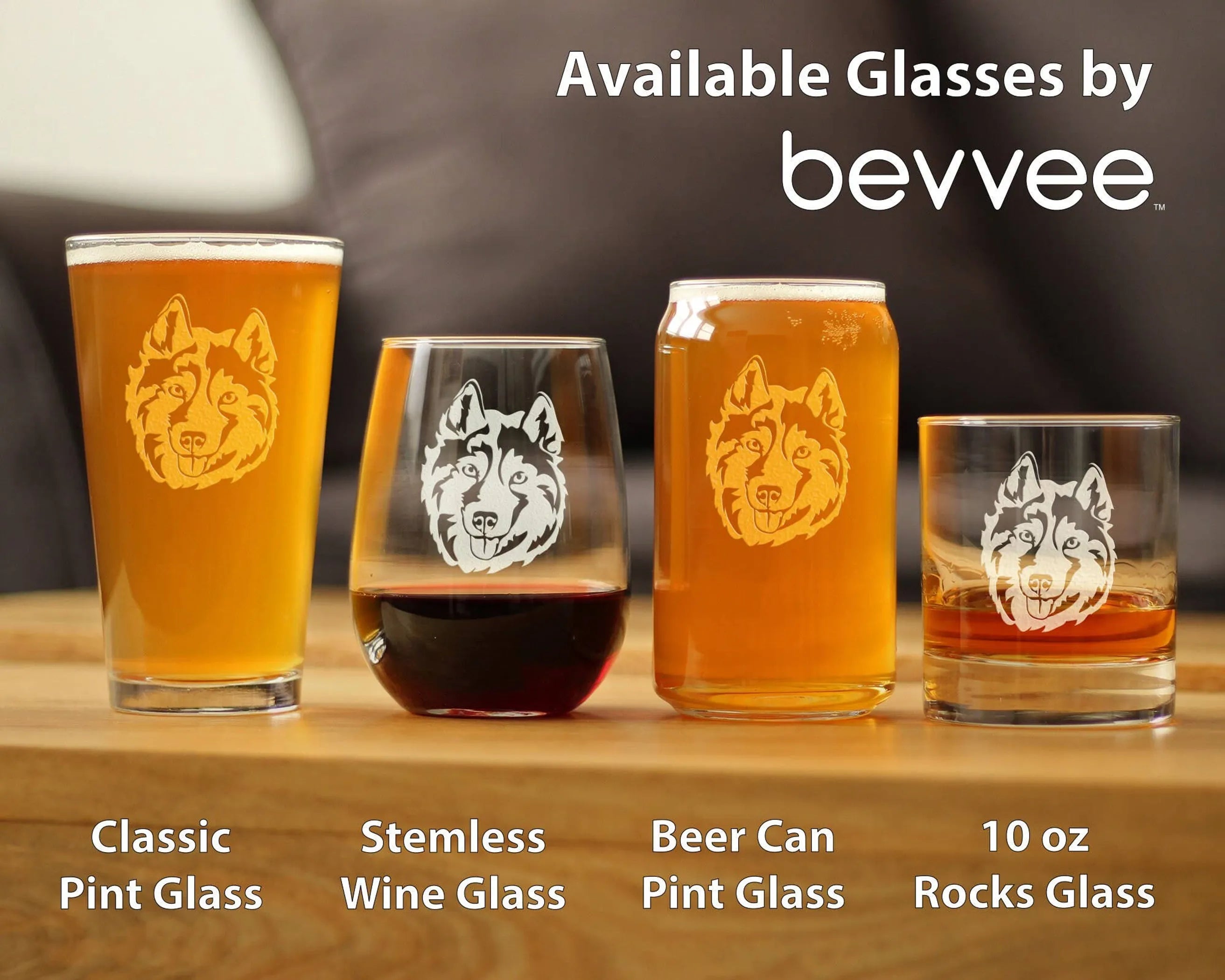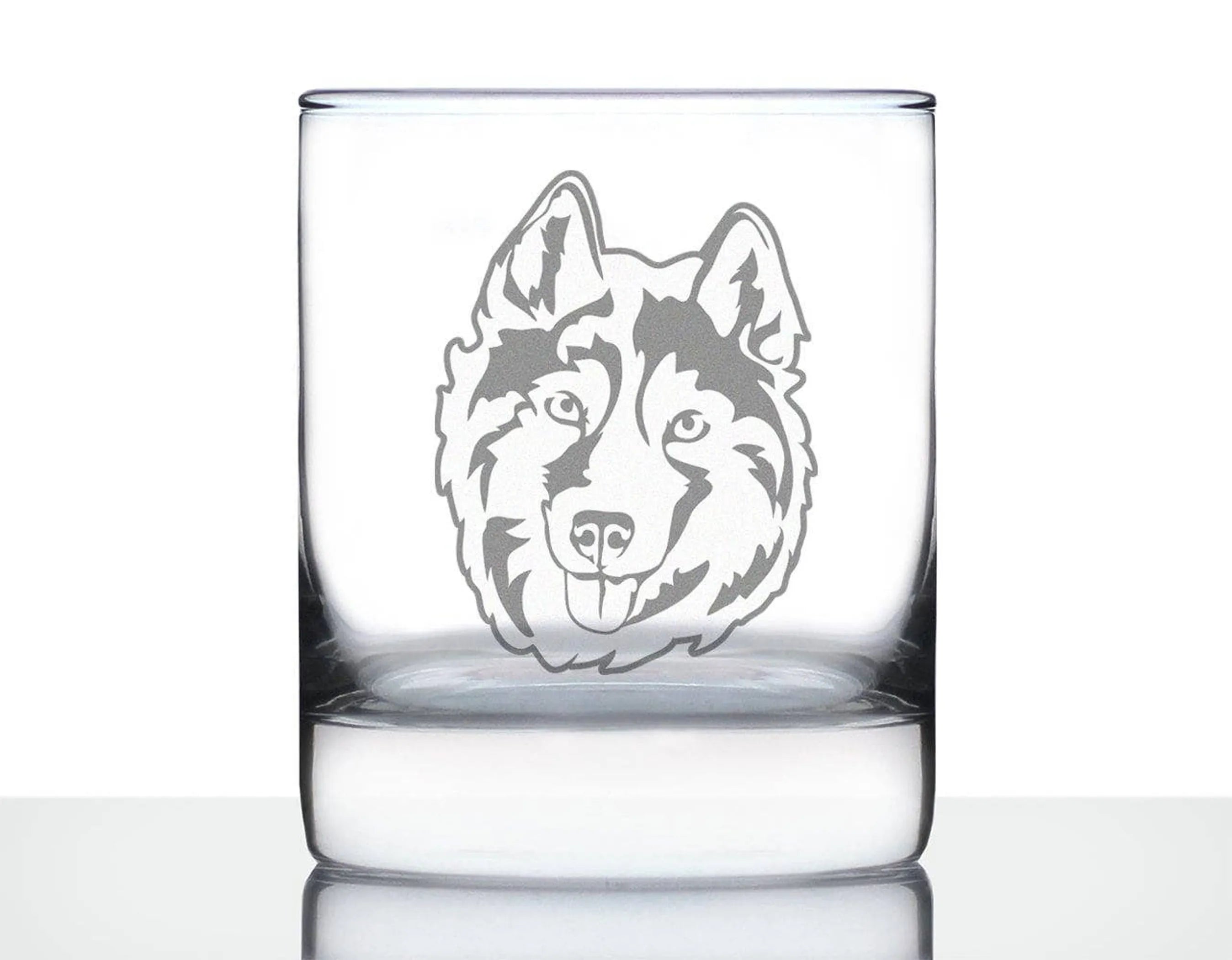 Siberian Husky Face - 10 oz Rocks Glass or Old Fashioned Glass, Etched Glassware - Cute Gifts for Dog Lovers with Siberian Huskys