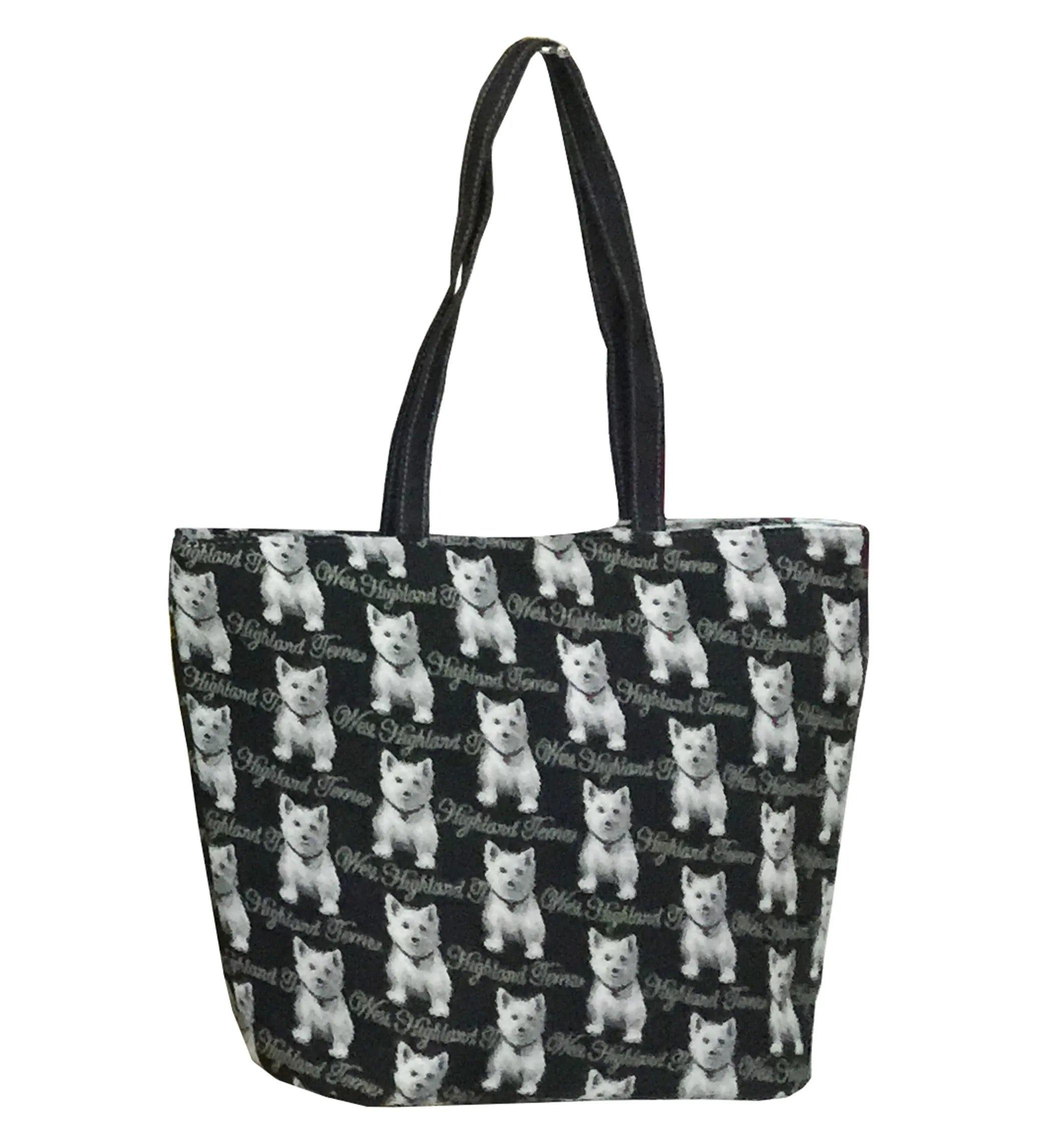 UNIQUE LIFESTYLE DESIGN: In this endearing tapestry design, an adorable West Highland Terrier sits patiently waiting for playtime. Our charming Westie dog is set against a black background and a red collar contrasts with his (or is it her?) white coat. What dog lover could possibly resist?
