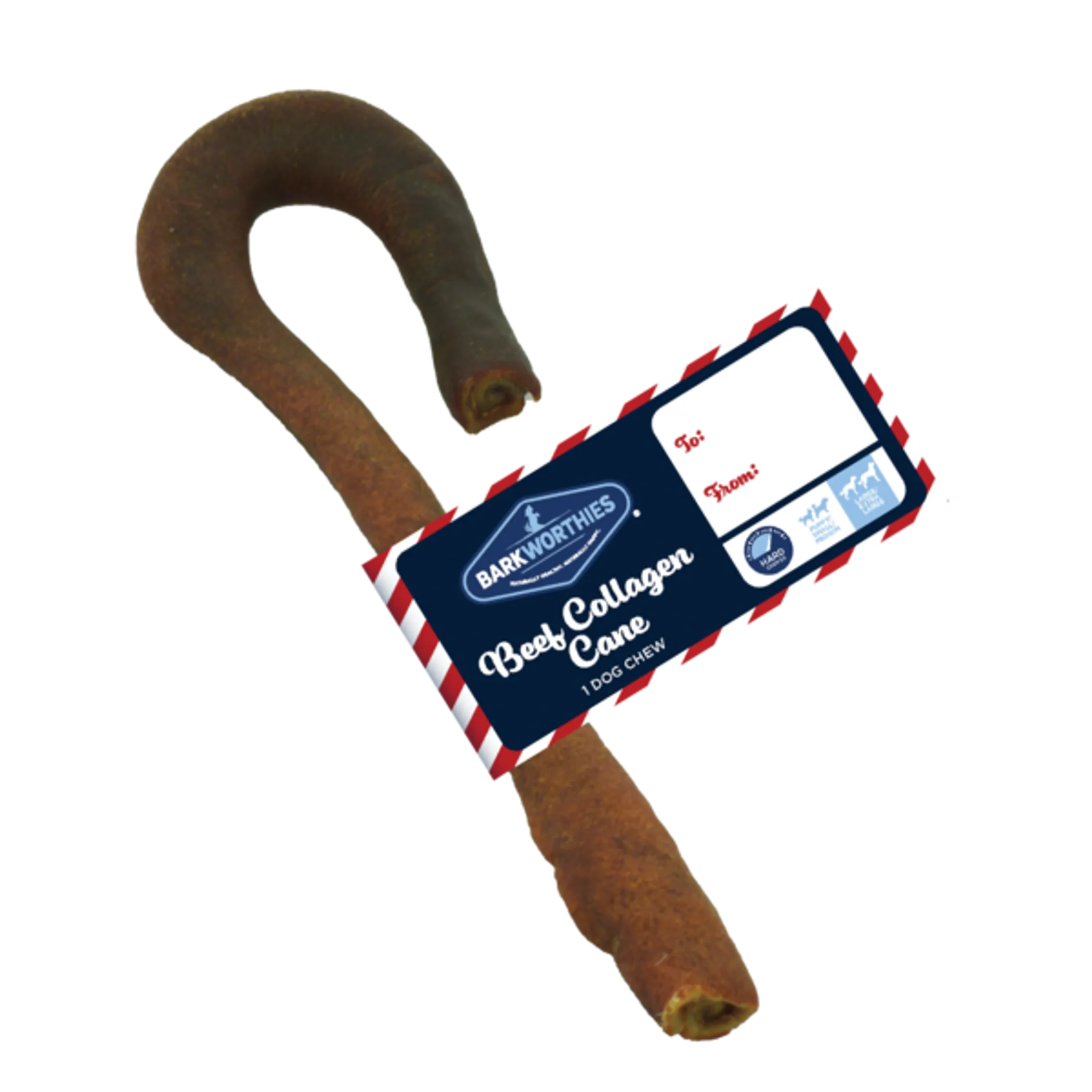 Barkworthies was created by a pet parent for pet parents that are passionate about love, play, food, and chews. We love our pets and want to give our dogs chews that we feel good about them chewing - something that is great for their health, speaks to their natural instincts, and just makes them happy. Part of being the best pet parent we can be is also being responsible for how we source our chews. Barkworthies' Collagen Cane is a cane-shaped collagen chew which promotes mobility, supports healthy skin and coat. Odor free. Recommended for large and extra large breeds.